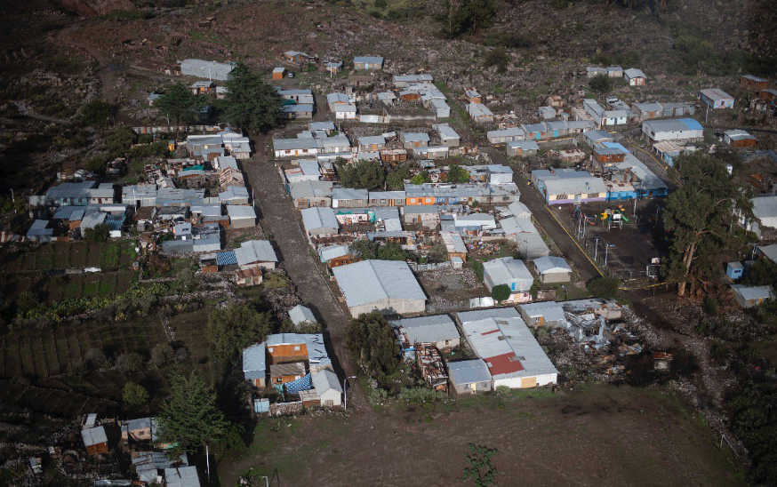 Previamente, el jefe de Estado realizó un vuelo para recorrer desde el aire la situación, llegando a la localidad de Jaiña, en la comuna de Huara, donde entregó agua, víveres y mochilas de emergencias para los niños afectados por las precipitaciones.