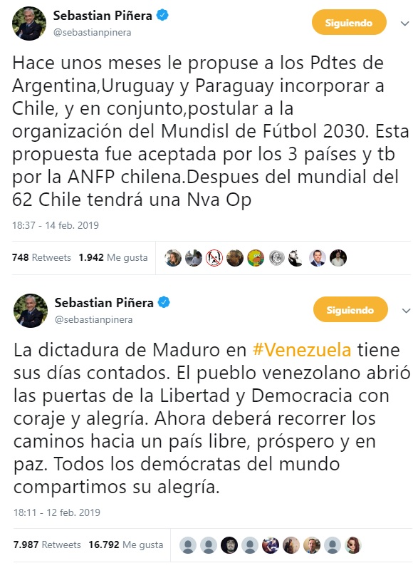 «Este incendio se encuentra cercano a sectores habitados”, señala una nota oficial, pero la alarmante información, que se suma a las miles de hectáreas que ya se ha calcinado en el sur y la Patagonia Chilena -y que debería tener de cabeza a las autoridades del país- pasa literalmente a un segundo y tercer plano noticioso, ya que en medio de esta emergencia el Presidente de la República interrumpió sus vacaciones para enviar un tuit y un video anunciando que el país postulará, junto a otras naciones, para organizar el Mundial de Fútbol de 2030.