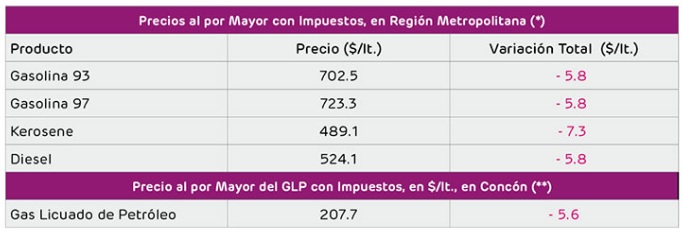 La Empresa Nacional del Petróleo (ENAP) informa que los precios que registrarán los combustibles a partir de este jueves 7 de febrero y hasta el próximo jueves todas las gasolinas, bajarán por decimosexta semana consecutiva.