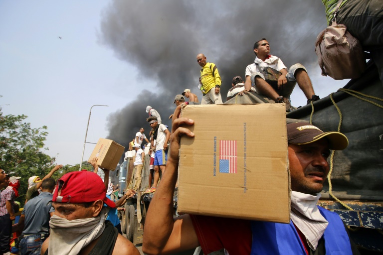 Migración Colombia confirmó poco después la quema de los dos camiones. Imágenes de video que circularon en las redes sociales y en canales de internet muestran a decenas de personas sacando de los camiones bolsas y cajas con medicinas y alimentos, en medio de una gran nube de humo. «Nuestros valientes voluntarios están realizando una cadena para salvaguardar la comida y las medicinas. La avalancha humanitaria es indetenible», aseguró Juan Guaidó, reconocido por 50 países como presidente interino de Venezuela.