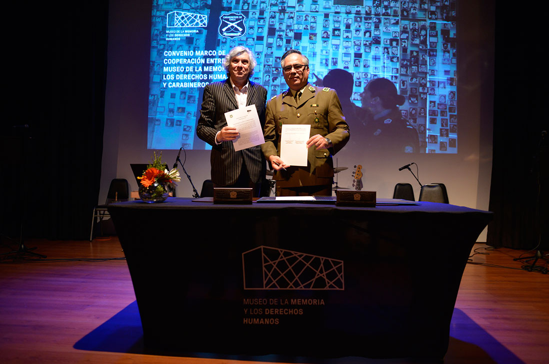 Este convenio, firmado entre el director ejecutivo del Museo de la Memoria y los Derechos Humanos, Francisco Estévez Valencia, y el General Subdirector de Carabineros, General Inspector Diego Olate Pinares, permitirá que a través del Departamento Derechos Humanos de Carabineros y la futura Dirección de Derechos Humanos de la institución, se realicen actividades formativas y de extensión ligadas a la formación en derechos humanos.