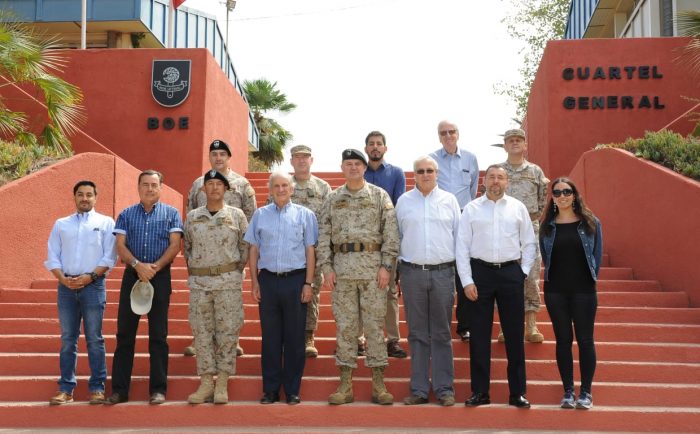 Antes de trasladarse a Peldehue, los diputados de la Comisión Defensa: Jorge Brito, Álvaro Carter Jaime Toha González, Ignacio Urrutia, Osvaldo Urrutia, se reunieron con el general Martínez, quien les explicó en qué consiste el Puesto de Mando del Ejército y Dirección de Operaciones.