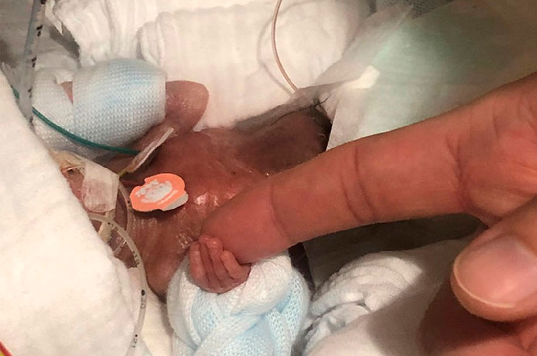 A causa de complicaciones en el embarazo, se tuvo que realizar una cesárea de emergencia, y así nació el que probablemente sea el bebé más pequeño del mundo.