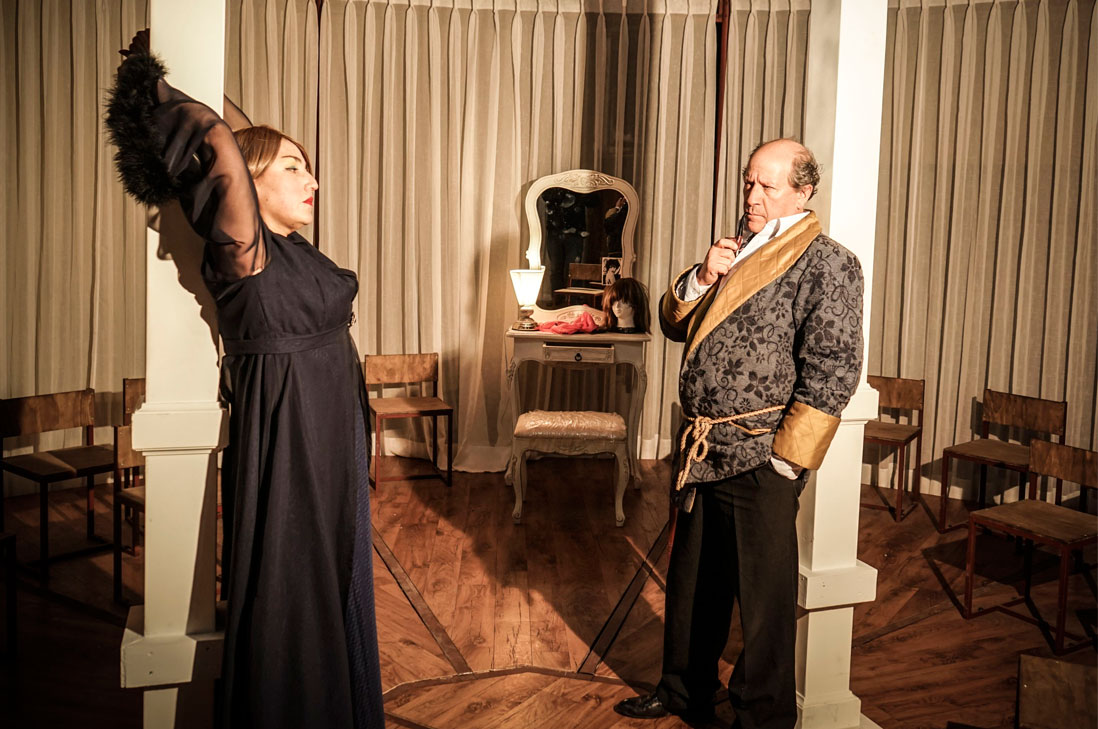 Delirio a dúo, montaje de la compañía Teatro del Uno, dirigido por José Ignacio García, invita a los espectadores a vivir una particular experiencia teatral dentro de una estructura escenográfica decagonal.
