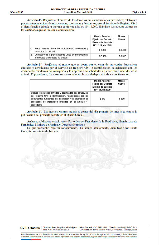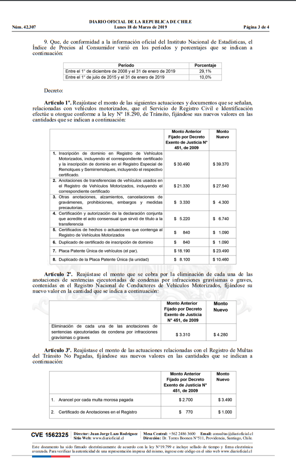 Sin embargo, en esa oportunidad se les olvidó comunicar que otros trámites sufrirían un aumento de sus precios en un 29%, lo cual fue publicado ese mismo día en el Diario Oficial.