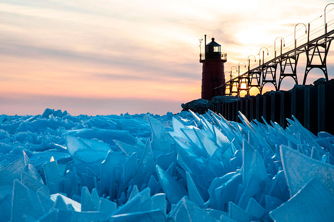 El vórtice polar ha mantenido congelado el lago Michigan durante la mayor parte del invierno. Por ejemplo, en Chicago se llegaron a alcanzar -30ºC, lo que causó que se formaran repisas de hielo en el lago, al chocar las olas sobre pilas de hielo ya formadas. La primavera trae más calor a la zona, destruyendo el hielo y convirtiendo la región en algo mágico.