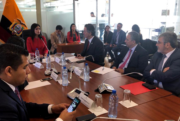 Ministro Roberto Ampuero junto Canciller de Ecuador, José Valencia y a la Alta Representante de la Unión Europea para Asuntos Exteriores, Federica Mogherini.