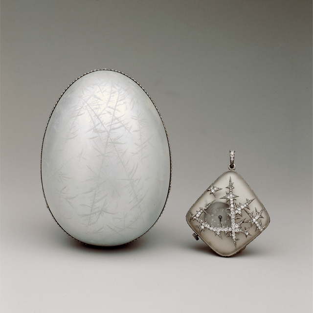 El huevo más costoso de esta colección fue diseñado en 1913 y es conocido como Huevo de Invierno, tallado en una piedra preciosa conocida como Cristal de Roca y adornado con diamantes que formaban figuras de copos de nieve, colocado en una base de cristal y en su interior guardaba una cesta de flores blancas elaboradas con oro y cuarzo blanco.