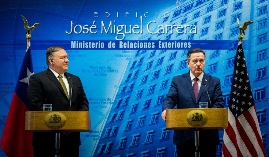 La crisis humanitaria en Venezuela y las relaciones bilaterales entre Estados Unidos y Chile fueron los temas que los jefes de las diplomacias de ambos países, Mike Pompeo y Roberto Ampuero, conversaron este viernes en una reunión que sostuvieron en el Ministerio de Relaciones Exteriores.
