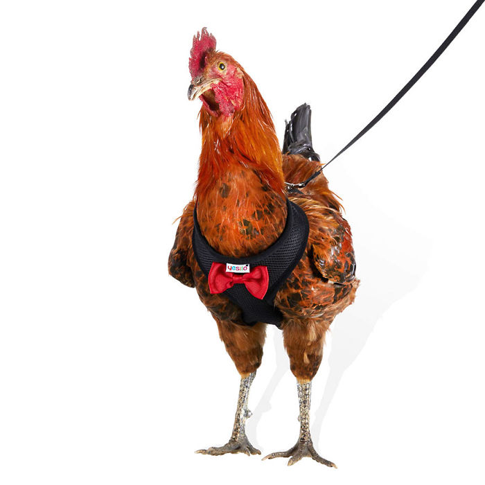 Una compañía llamada Yesito vende estos coloridos arneses para gallinas que te ayudarán a resolver los problemas a la hora de llevarlas de paseo. ¡Y hasta puedes elegir el color que mejor le quede a tu gallina!