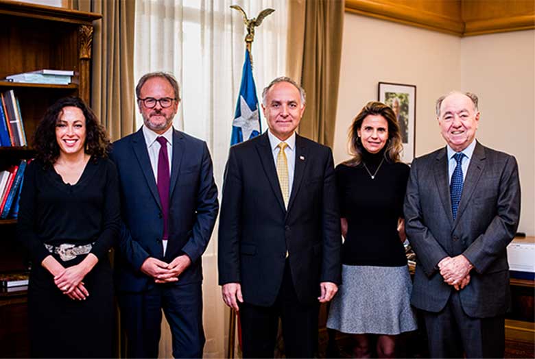El Ministro de Relaciones Exteriores, Teodoro Ribera, sostuvo este martes una reunión de trabajo con el presidente de la Sociedad de Fomento Fabril (Sofofa), Bernardo Larraín Matte (el verdadero partido político de los empresarios que han estado criticando duramante al Gobierno), junto a él, asistieron al encuentro Juan Eduardo Errázuriz, la directora de empresas, Paola Cuneo y la presidenta de la Fundación ChileMujeres, Francisca Junemann, quienes son integrantes del Capítulo Chileno del Consejo Empresarial de la Alianza del Pacífico (CEAP)