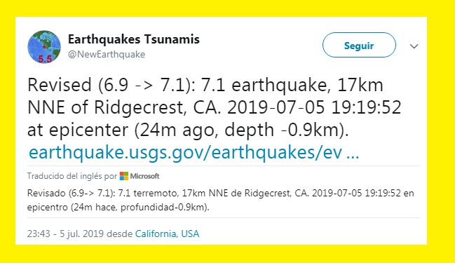 — USGS Big Quakes (@USGSBigQuakes) 6 de julio de 2019