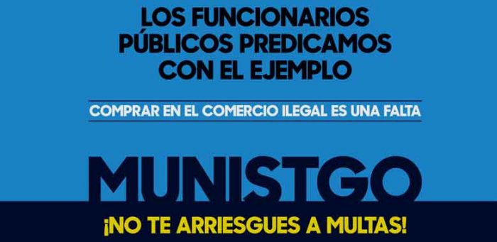 “Los funcionarios públicos predicamos con el ejemplo. Comprar en el comercio ambulante ilegal es una falta”, esa es la frase del afiche que desde este lunes la Municipalidad de Santiago comenzó a distribuir, junto a un oficio, en todas las entidades públicas que operan en la comuna llamando a los Ministros de Estado, Directores y Jefes de Servicios a instruir a sus funcionarios a no comprar en el comercio ambulante ilegal.