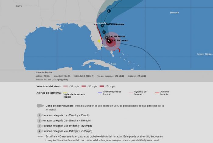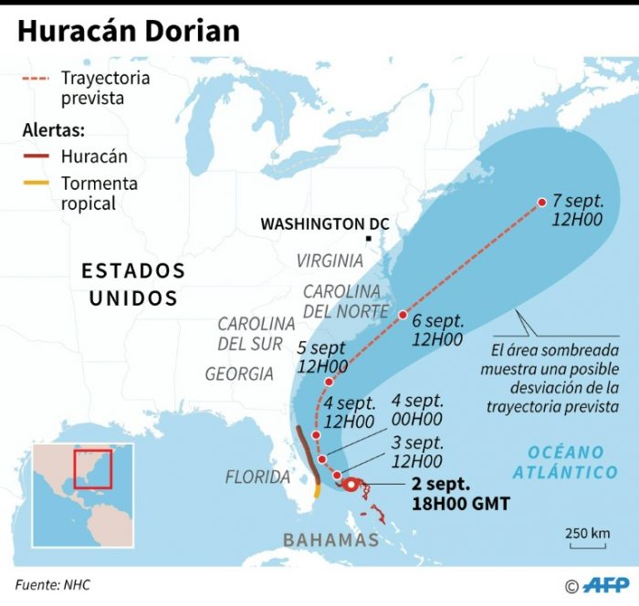 A pesar de este debilitamiento, las autoridades de EEUU han dado orden de evacuación en Florida, Georgia y Carolina del Sur, en tanto American Airlines informa que ha cancelado 375 vuelos hasta el miércoles debido al huracán Dorian.