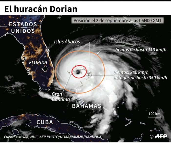 El poderoso huracán Dorian prácticamente se detuvo sobre las Bahamas el lunes, prolongando la agonía mientras las crecientes aguas y los fuertes vientos arrasaban las comunidades de las islas, donde se cobró al menos cinco muertos, en tanto provocaba evacuaciones masivas en la costa este de Estados Unidos, informa un cable de AFP.