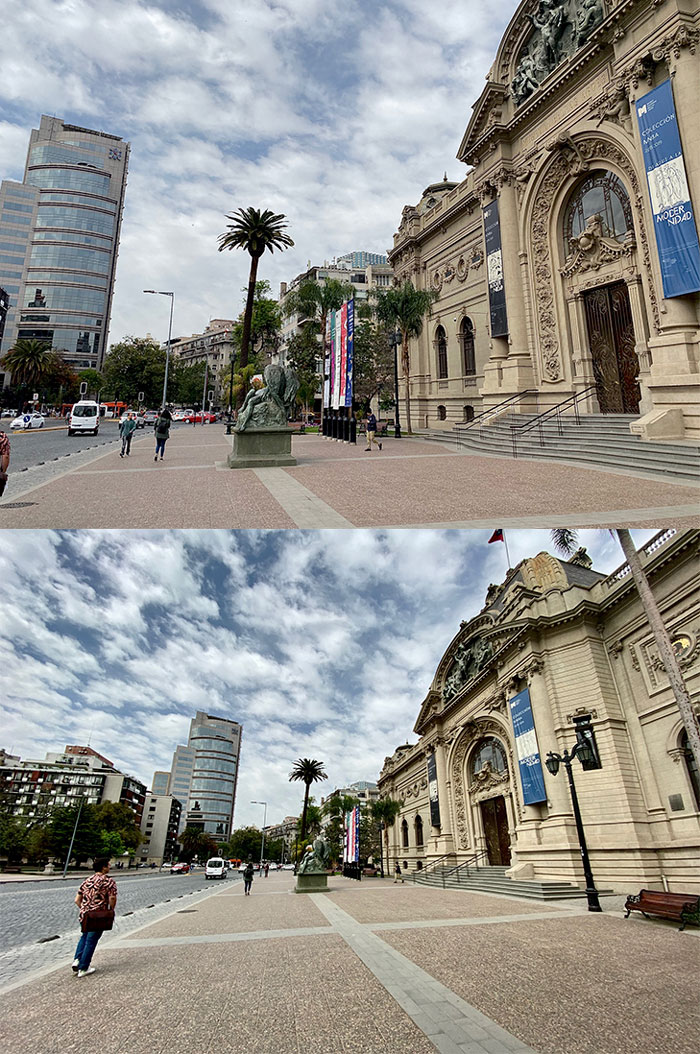 Una de las nuevas características que posee este nuevo celular de Apple, es que trae incorporada dos cámaras, una de gran angular y la segunda de ultra gran angular, ambas de 12MP, lo que básicamente permite ampliar el cambio visual de un paisaje, de un grupo de personas, e incluso para hacer una selfie y es súper simple, sólo hay que seleccionar la distancia del lente desde la pantalla! Aquí te traemos algunos ejemplos de una fotografía en modo normal y otra con gran angular: