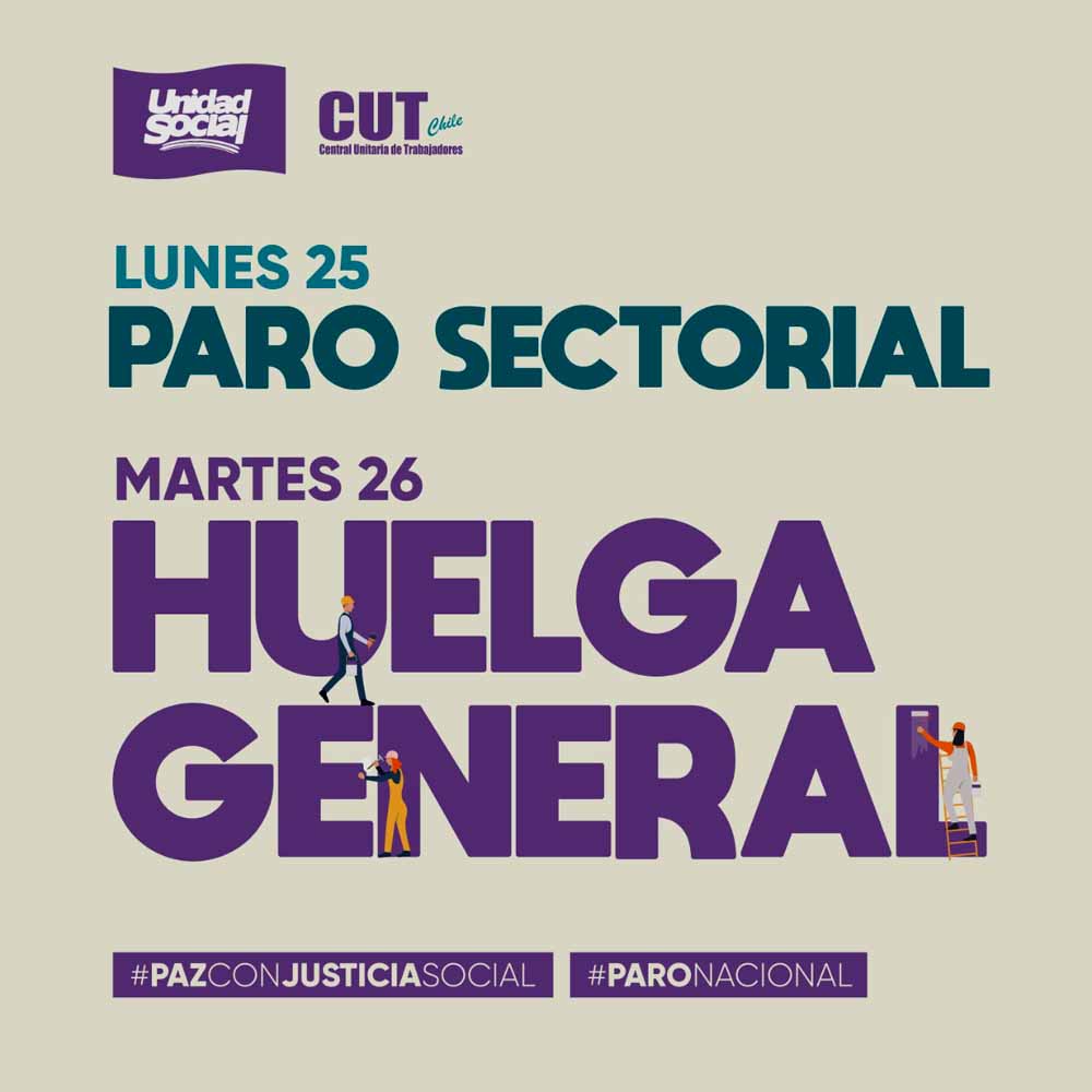 ¡Este 25 y 26 de noviembre, llamamos a Paro Progresivo y Huelga General! #UnidadSocial #NosCansamosNosUnimos #ChileDesperto #laluchasigue pic.twitter.com/AJFzWzyc6d