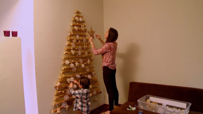 Árbol de pared: Diferentes proyectos inmobiliarios cuentan con espacios muy dinámicos por lo que se pueden aprovechar las paredes para crear un árbol de navidad original. Este tipo de decoraciones se logra con materiales variados, desde palos de madera, papel o dar la forma de pino sólo con las luces.
