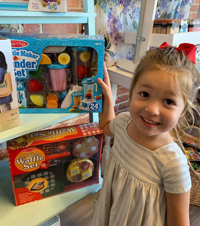 “Teníamos una buena cantidad de dinero en juguetes en casa, y los niños nos ayudaban a sacarlos de las cajas y organizarlos. Por supuesto, con 2 años, quieres todos los juguetes que hay en tu propia casa, para ellos era como tener la juguetería en el hogar. Emmie quería abrirlos y jugar con todo, y no entendía que no eran para ella. Tenía 2 años, claro.”