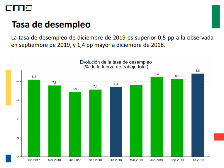 Dicha cantidad corresponde al número de personas que reportaron estar desocupadas durante la semana de referencia de la encuesta, la cual se realizó entre el 8 y 14 de diciembre de 2019.