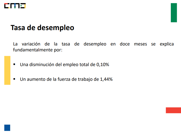 Los resultados de la Encuesta de Ocupación y Desocupación (EOD) indican que es la tasa de desempleo más alta observada en los últimos tres años y se ubica sobre el promedio de los últimos 10 años (7,7%), aunque desde una perspectiva de largo plazo se encuentra bajo el promedio de los últimos 20 años (9,4%).