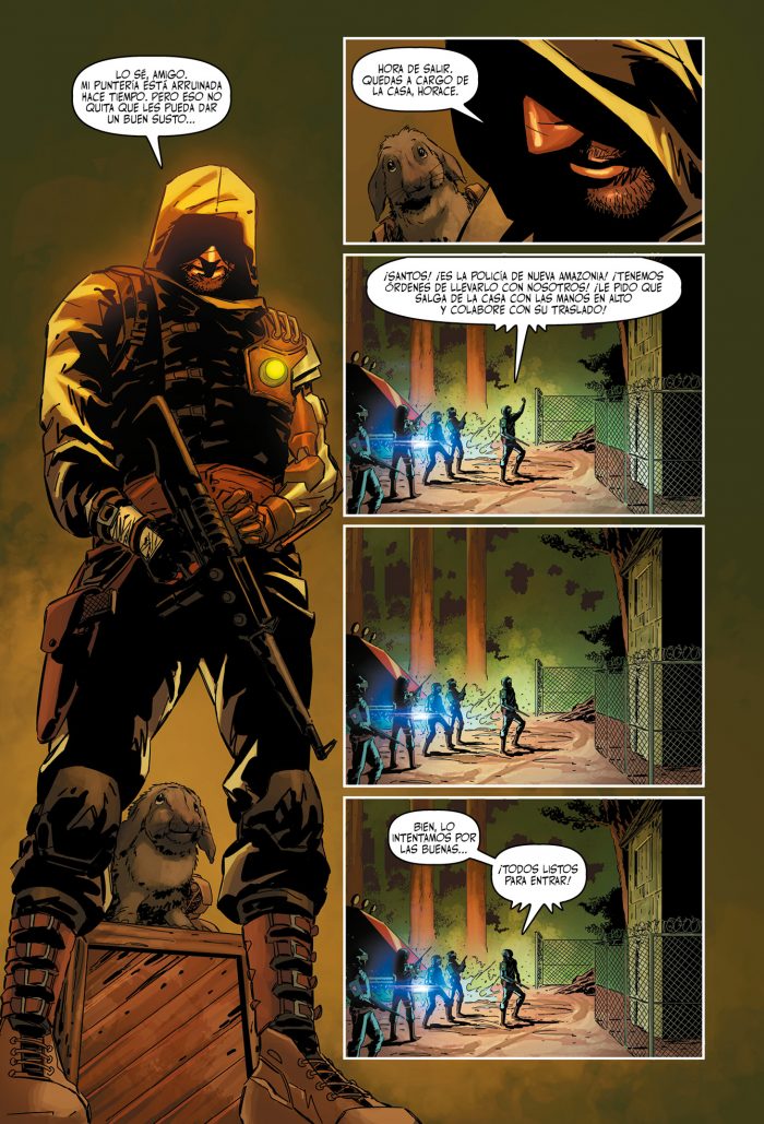 Al respecto, Alvarez agrega que “es una historia de policías, casi a la antigua, pero con un montón de elementos y detalles que la hacen atractiva, creo. Es un terreno donde es difícil no caer en el cliché, por lo que usé los ingredientes que normalmente uno encuentra en estas historias, para construir a partir de ahí. La estética tiene que ver con el steampunk, pero está ambientada en Sudamérica, por lo que quisimos mantener la identidad y el colorido de nuestro continente. Nueva Amazonia es toda Sudamérica, aunque en este caso elegimos ambientar la historia en lo que sería una zona de Brasil”.