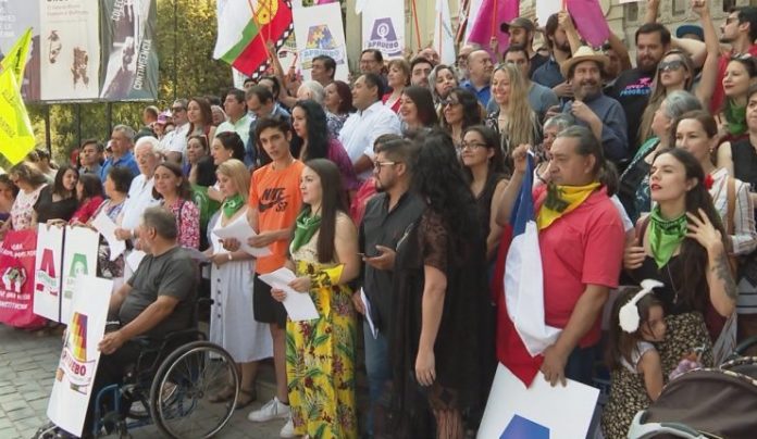 Los partidos que conforman la coalición «Unidad para el Cambio«, y que no firmaron  el Acuerdo por la Paz Social el pasado 15 de noviembre, lanzaron este domingo, frente al Museo de Bellas Artes, la campaña publicitaria con la que enfrentarán el plebiscito de abril, la que tendrá el eslogan «Chile Digno».