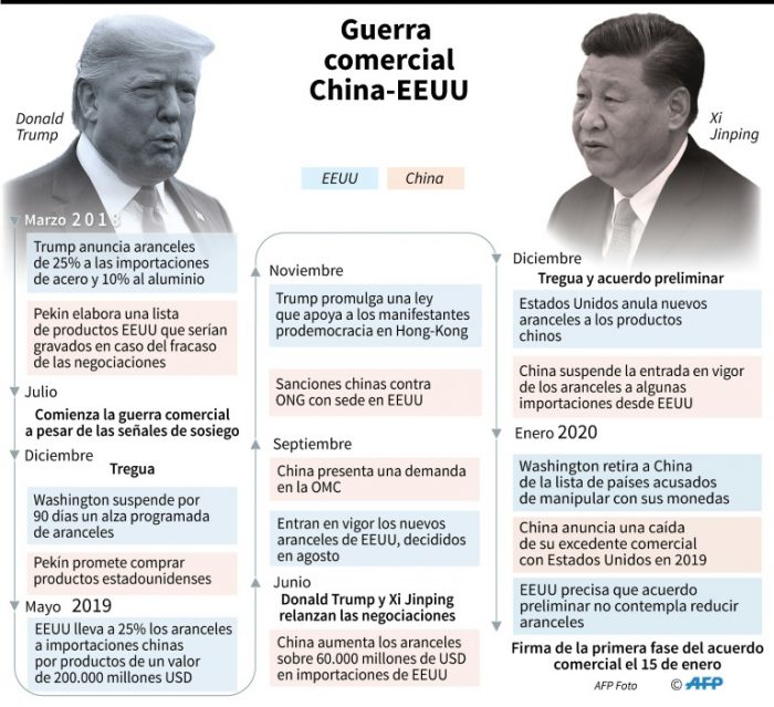 El acuerdo, llamado de «fase uno», incluye el compromiso de China de elevar sustancialmente sus compras de productos estadounidenses, proteger la tecnología estadounidense y aplicar nuevos mecanismos de cumplimiento de normas comerciales.