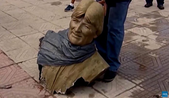 Un video de la agencia francesa AFP, muestra cómo autoridades bolivianas, simplemente destrozaron un busto del ex presidente Evo Morales, que adornaba el polideportivo de Cochabamba demostrando así que la «moda» de derribar monumentos que ha inundado Chile es una constante en todas partes