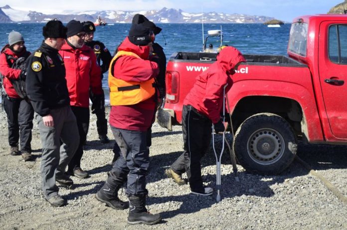El Gobernador Marítimo de la Antártica Chilena y Capitán de Puerto de Bahía Fildes, capitán de Fragata Lirotal Alejandro Valenzuela, indicó que “se nos solicitó el apoyo para la evacuación médica por vía marítima para una científica nacional que sufrió una fractura mientras efectuaba investigaciones científicas. La mujer pudo ser desembarcada sin inconvenientes con el apoyo del médico de la base coreana y nuestro enfermero, pudiendo ser trasladada a Bahía Fildes, donde fue evaluada por el médico de la Base Frei, para luego ser trasladada a Punta Arenas en un vuelo C-130 de la Fuerza Aérea brasileña”.