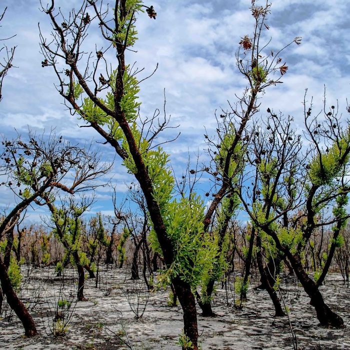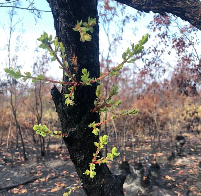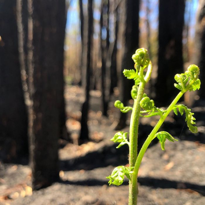 Las plantas han evolucionado para proteger sus capullos del fuego, así pueden volver a brotar después de que se queme su superficie, o aprovechar los nutrientes de la ceniza, estas son llamadas plantas pirófilas. No es raro verlas floreciendo en masa tras un incendio devastador, y sus colores verdes y rojos brillantes contra el paisaje ennegrecido produce un asombroso efecto visual. Pero a pesar de que este ciclo de arder y renacer es normal en la vegetación australiana, la flora y fauna supervivientes aún tienen bastantes desafíos por delante.