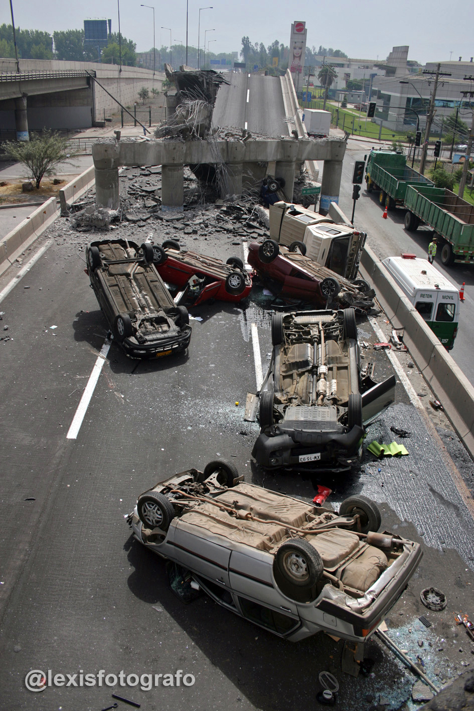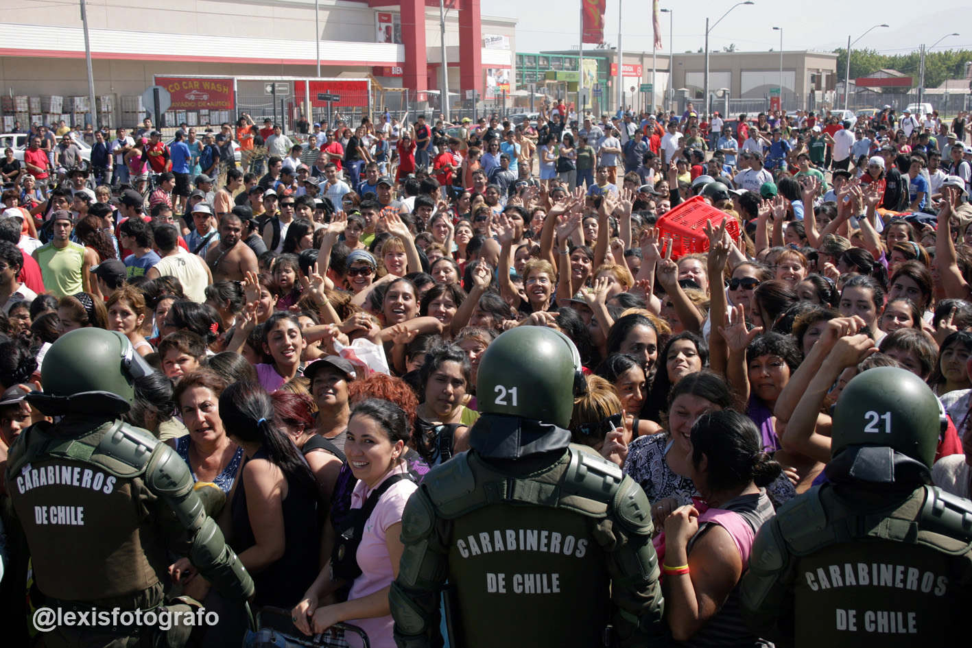 El siguiente es el registro gráfico que capturó el fotógafo Alexis León, en Santiago, la capital chilena. León, en ese instante estaba recién egresado y realizaba su práctica profesional en el diario La Cuarta.