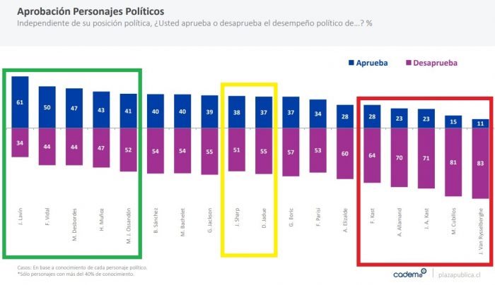Joaquín Lavín continúa siendo el político mejor evaluado (61%) y lidera la carrera presidencial. 12% cree que será el próximo presidente de Chile, seguido a mucha distancia por José Antonio Kast (3%), Franco Parisi, Daniel Jadue, Beatríz Sánchez y Michelle Bachelet, todos con 2%.