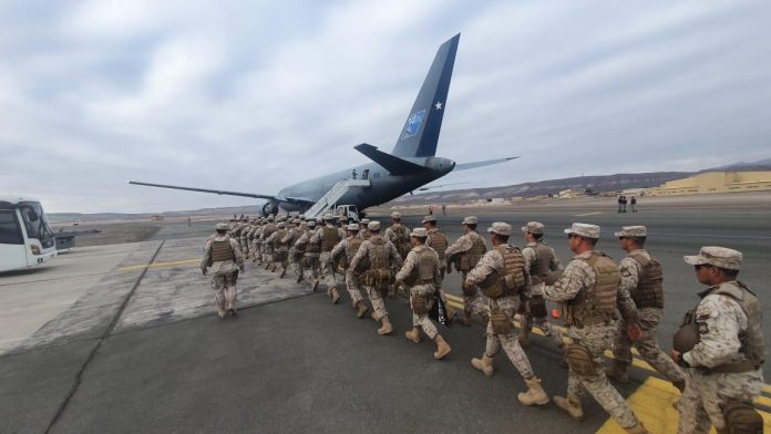 Con el fin de apoyar las tareas de seguridad pública, en el marco del estado de excepción constitucional de catástrofe, el Ejército procedió al despliegue de efectivos desde Antofagasta hasta la ciudad de Santiago.