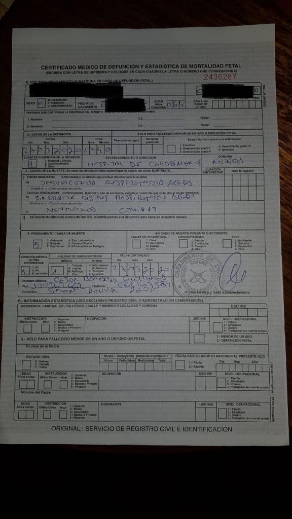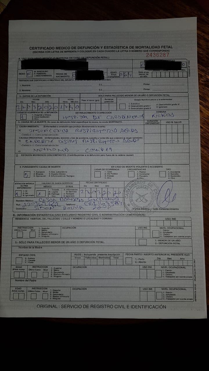 “No es que sean dos certificados de defunción, hay uno que es el certificado de defunción que fue emitido por un residente de nuestra unidad. Lo que ustedes nombran como un segundo certificado es la negatividad del test que muestra la PCR del Instituto de Salud Pública”, afirmó.