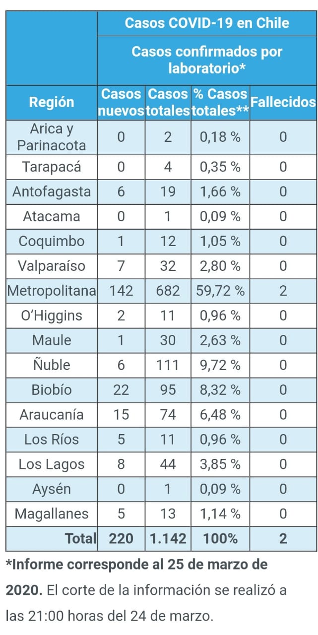 Finalmente, se dio a conocer el tercer caso fatal por coronavirus, correspondiente a un paciente de 82 años fallecido en Concepción y que presentaba además un cuadro clínico de cáncer con metástasis extendida, muerte que fue confirmada a las 11.20 horas, esto es, instantes previos a iniciarse el punto de prensa.
