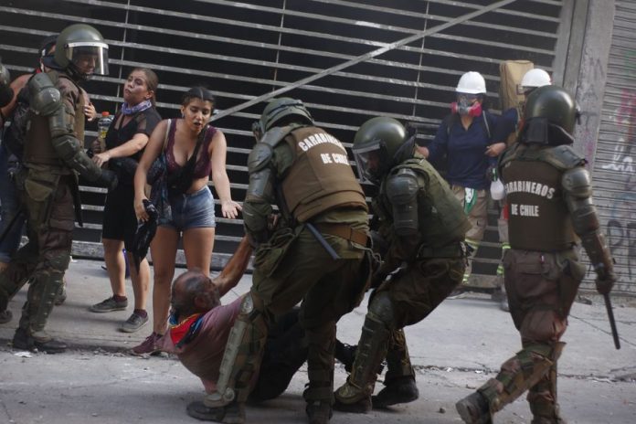Hay que recordar que el video ampliamente difundido se aprecia a un carabinero que golpea en varias oportunidades con su bastón a un adulto mayor en el suelo y luego que se levanta le abraza el cuello para tirarlo nuevamente al suelo.