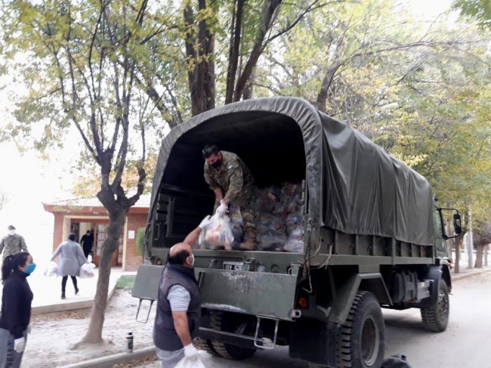 En Neuquén La Compañía de Cazadores de Montaña 6, del Ejército Argentino, distribuyó bolsones de alimentos entre los pobladores más necesitados de las localidades. (Foto: Ejército Argentino)