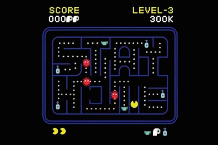 En lugar de fantasmas, el «come-cocos» amarillo de Ahmed tiene que huir del coronavirus y la tarea de recolectar desinfectante de manos y papel higiénico. Una representación virtual de una realidad que medio mundo está viviendo debido a la crisis del coronavirus.