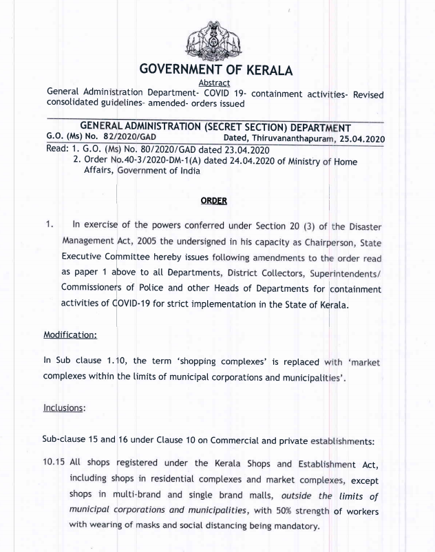 La semana pasada, el gobierno también permitió la reanudación de la actividad en fábricas y de la agricultura en zonas rurales para aliviar la difícil situación económica de millones de asalariados y jornaleros que se habían quedado sin empleo por el confinamiento del país impuesto el 24 de marzo. Las restricciones de quedarse en casa en India permitían que las personas sólo salieran de sus hogares para comprar alimentos, medicinas u otros artículos básicos.
