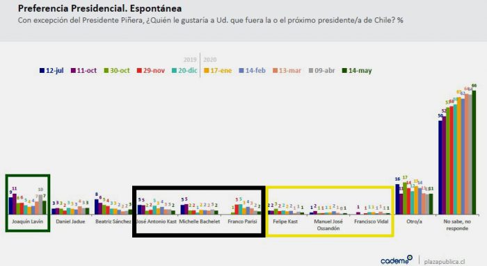 En cuanto a la aprobación del Presidente Piñera. Esta semana la aprobación se ubica en 24% y la desaprobación en 66%.