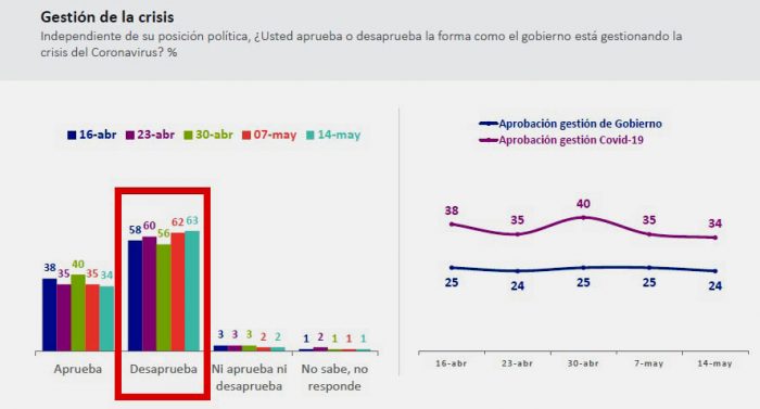 Así, esta semana, CADEM señala que el 63% de los encuestados cree que el Gobierno gestiona mal la crisis.