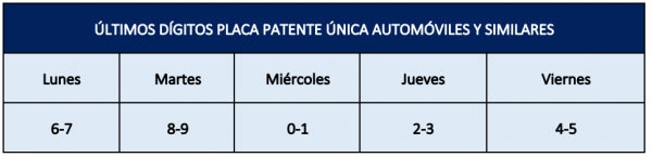 Considerando la pandemia de COVID-19 que afecta al país, en esta oportunidad, se dispuso una excepción para los vehículos de uso particular del personal de la salud que se desempeñe en establecimientos públicos o privados, y que cuenten con servicios de urgencia. La solicitud deberá ser realizada por el establecimiento de salud respectivo, indicando los datos de los vehículos y acompañando su documentación en la página web www.mtt.gob.cl o al correo electrónico ofiparteseremitrm@mtt.gob.cl.