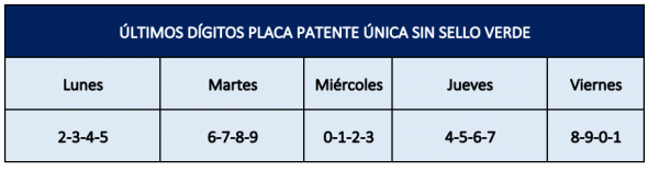 Durante este periodo se mantiene vigente la restricción habitual para vehículos sin sello verde, y motocicletas fabricadas antes de 2002, que no podrán ingresar al anillo Américo Vespucio de lunes a viernes, excepto festivos, entre las 7:30 y las 21:00 horas.
