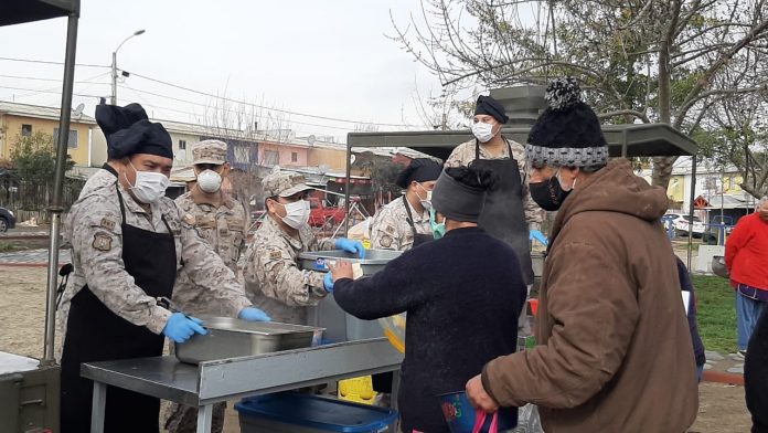Los efectivos del Ejército de Chile se han desplegado de manera ininterrumpida en el país, desarrollando diversas misiones de seguridad en apoyo a la población en medio de la pandemia de Covid-19, como el resguardo del cumplimiento del toque de queda, controles y aduanas sanitarias, además de tareas humanitarias como entrega de alimentos y, en especial, acciones con labores en el cuidado de la salud de los chilenos.