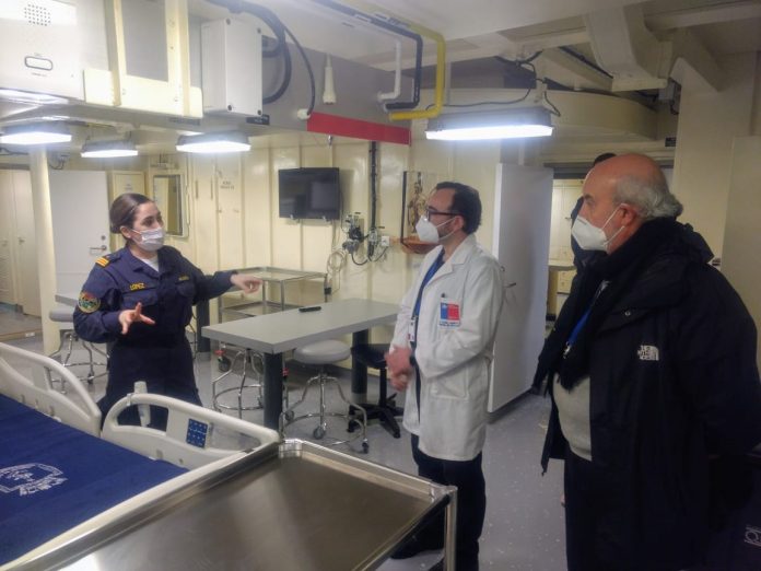 Mediante una lancha Defender, de la Capitanía de Puerto de Valparaíso, las autoridades sanitarias realizaron una visita técnica a las instalaciones de la unidad naval que se encuentra fondeada a la gira. Quienes llegaron a conocer en terreno el buque fueron el Seremi de Salud (S) de Valparaíso, Jaime Jamett; el director del Servicio de Salud Valparaíso – San Antonio, Eugenio de la Cerda; el director del Hospital Van Buren, Javier del Río, y facultativos de dicho hospital, entre ellos, el doctor Ignacio De la Torre, Presidente del Colegio Médico Regional Valparaíso.