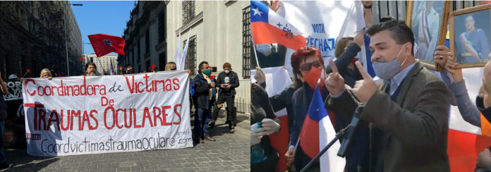 En el entorno del Palacio de La Moneda se efectuaron principalmente las conmemoraciones de los partidos políticos, pero también de grupos de derechos humanos y, de forma especial, grupos de personas afectadas por la acción policial tras la movilización popular del 18 de octubre del año pasado.