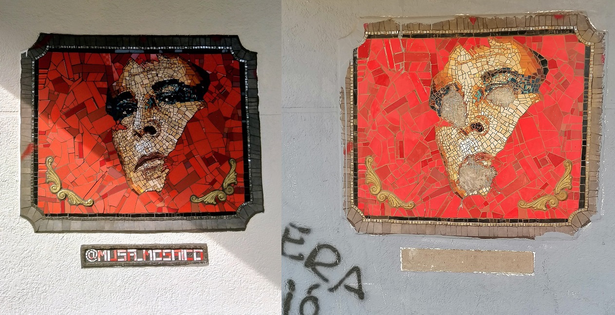 La Fundación Santiago Nuestro, que preside Ismael Calderón, denunció que durante la tarde de este miércoles 16 de septiembre, «fue ultrajado y violentado el mosaico que recuerda al gran poeta, novelista y artista plástico Pedro Lemebel, que se ubica en las calles Tarapacá con Nataniel Cox, en el centro de Santiago. Los daños al mosaico son severos, le sacaron los ojos y la boca».