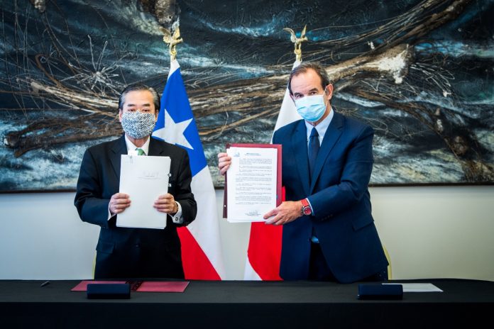 El Canciller Andrés Allamand y el embajador de Japón en Chile, Yoshinobu Hiraishi, llevaron a cabo este martes el Canje de Notas sobre Cooperación Financiera No Reembolsable de Equipos Médicos y de Salud («Programa de Desarrollo Económico y Social»), por un monto de 500 millones de yenes (unos 4,6 millones de dólares).