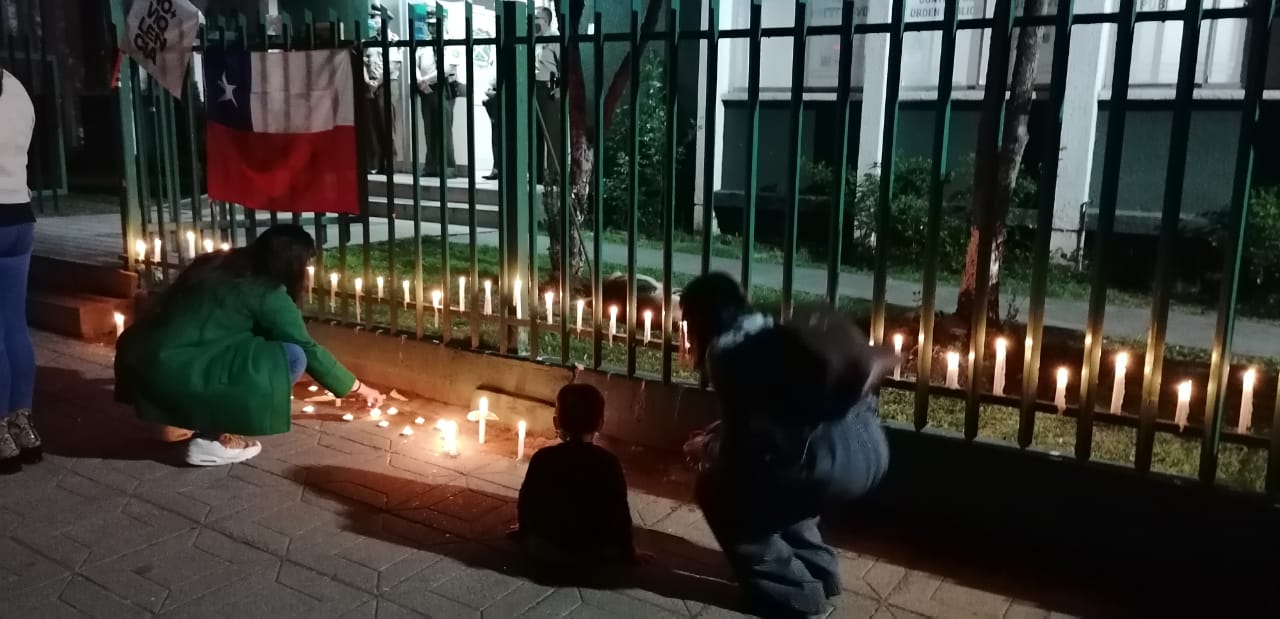 Las personas acudieron a unidades policiales portando velas, flores y fotografías del carabinero de 24 años, pidiendo “justicia para Eugenio Naín” y colocando carteles con la leyenda: “Asesinado por terroristas”.
